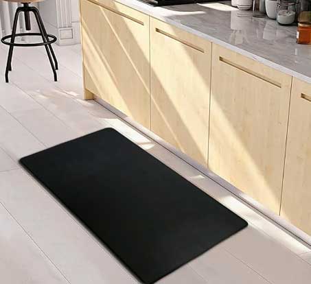 Rubberized, textured non-slip is designed for heavy shoe traffic, yet is comfortable enough for bare feet.