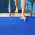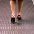 Rubberized, textured non-slip is designed for heavy shoe traffic, yet is comfortable enough for bare feet. Provides unparalleled coefficient